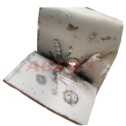 此焊接产品为镀锌板点焊拉穿测验样品,采用安嘉自动化中频直流逆变点焊机进行焊接,中频焊机控制器经过IGBT逆变,频率可达1000HZ,焊接时间ms级控制,次级回路直流输出,阻抗小,焊接电流稳定。焊接出来工件牢度强,表面压痕小,在破坏试验时焊点可以拉穿母材。