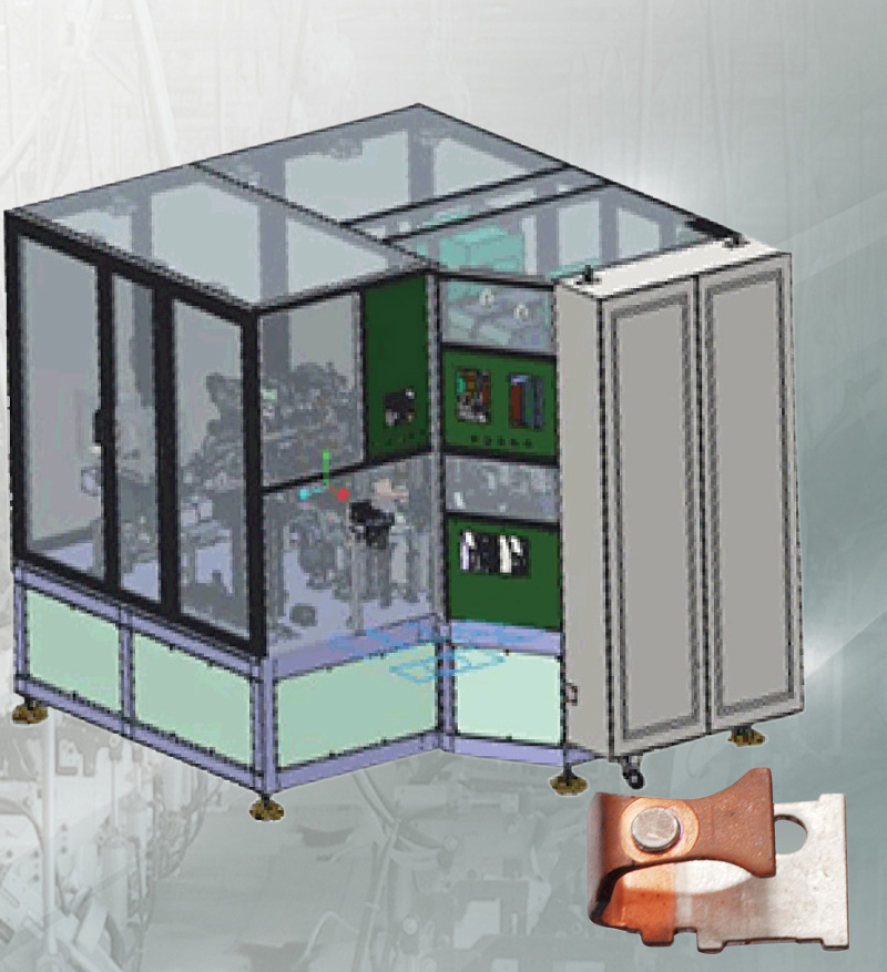 6、本机是专门为断路器中的静触头片与银点焊接而设计的专机,静触头片采用人工预排料,伺服机构自动上银点,银点的位置精度可以控制在0.02MM以内,自动出料的工作方式,具有焊接质量高,质量稳定性好,劳动强度低,生产安全性好等优点;