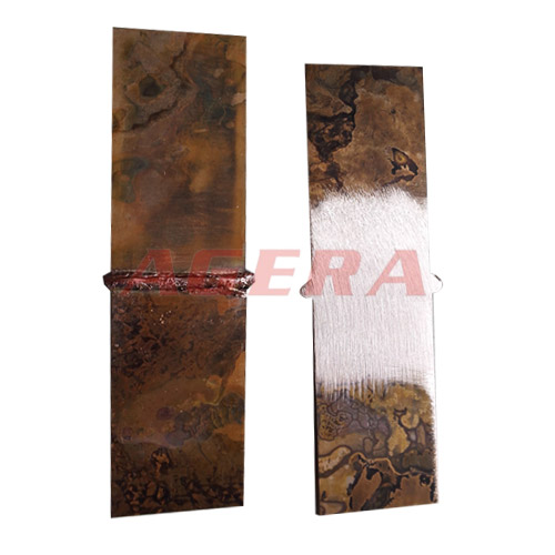 此焊接产品为3*50mm紫铜板对焊样品,采用安嘉自动化交流逆变电阻对焊机,上下电极要求平整度高,大压力夹紧,加以大电流对焊而成。以下为焊接此产品的焊机。