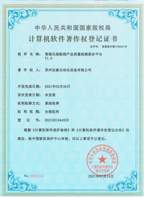 安嘉软著-智能化装配线产品质量检测服务平台